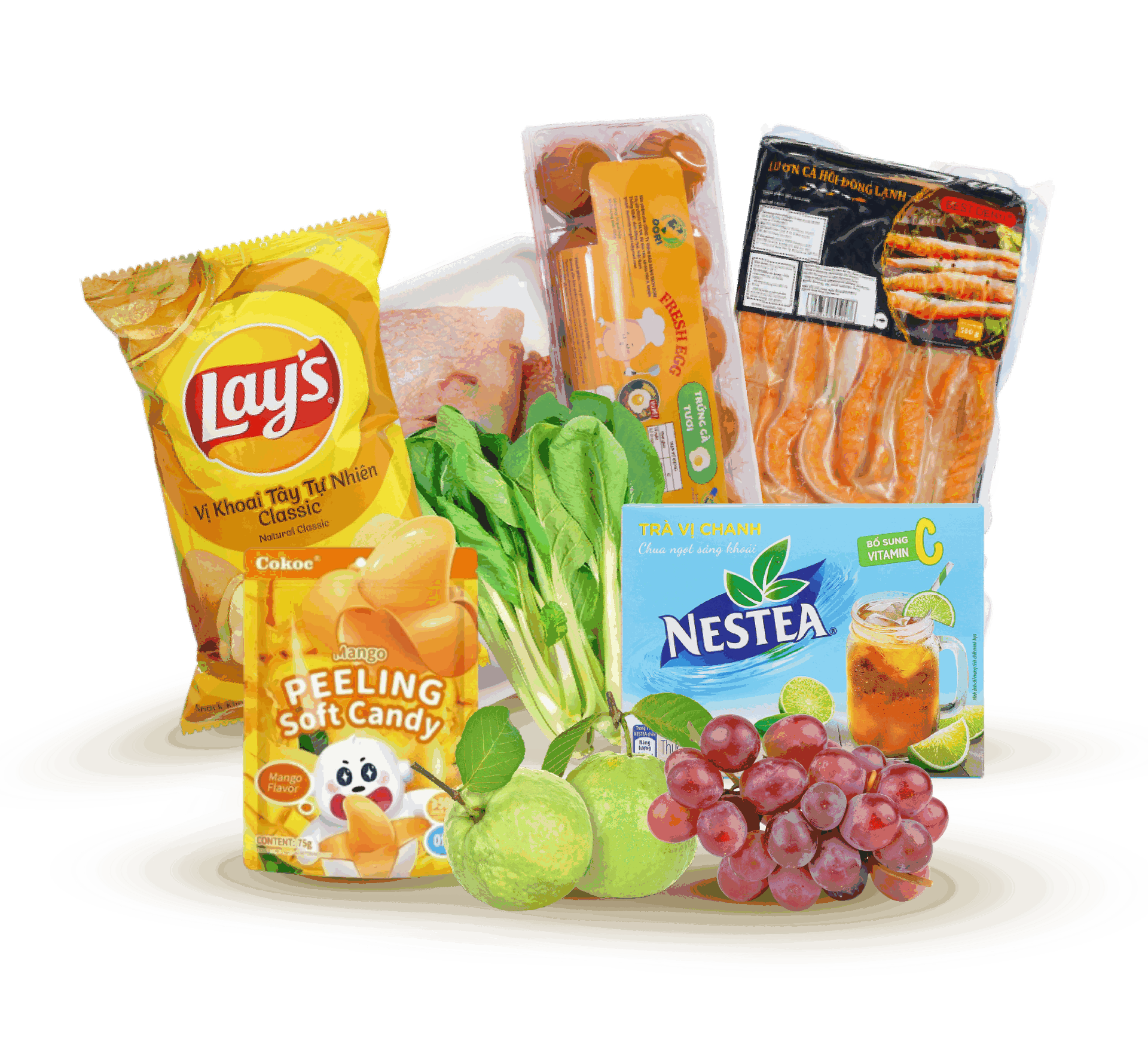 Gồm rau, trái cây, thịt, thực phẩm khô, đồ uống, và nhiều sản phẩm khác để đáp ứng nhu cầu mua hàng đa dạng cho quán ăn, nhà hàng!